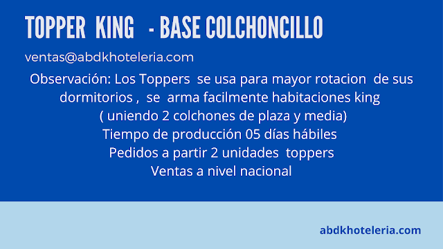 ABDKHOTELERIA.COM - EMPRESA PERUANA FABRICANTE TEXTIL EDREDONES, SABANAS, TOALLAS , dedicada al Equipamiento Hotelero, tenemos mejor precio del mercado. lleve Todo para su hotel en un solo Lugar, PUEDES COTIZAR CON NOSOTROS , SOMOS MAYORISTAS FABRICANTES ROPA DE CAMA / Ventas2abdk@gmail.com / 959766873 / 982308546 envios a todo el Peru , Estamos aqui GALERIA LA REYNA PISO 7 - 702 // GAMARRA